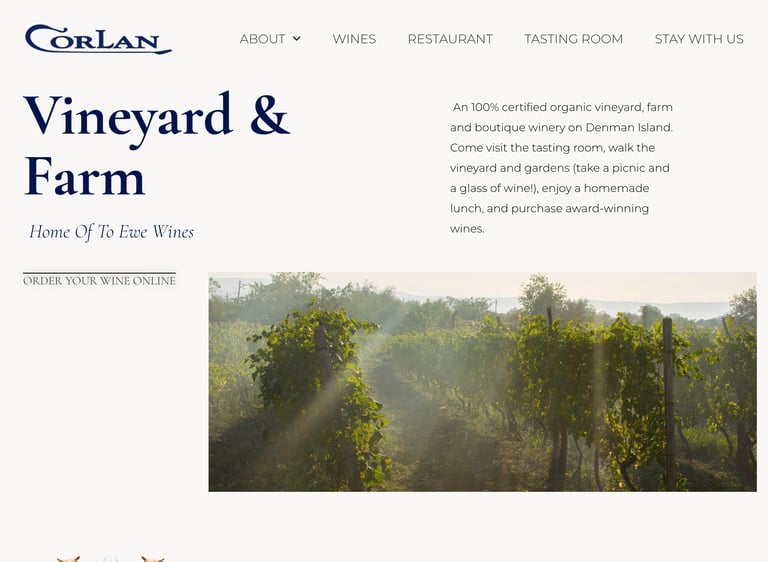 A warm, organic website designed to reflect the character and craftsmanship of the vineyard.